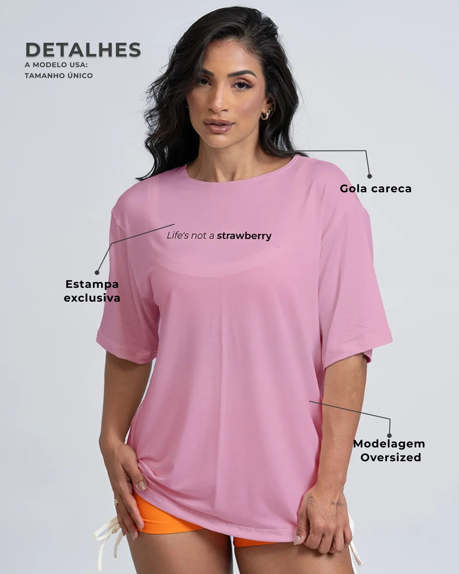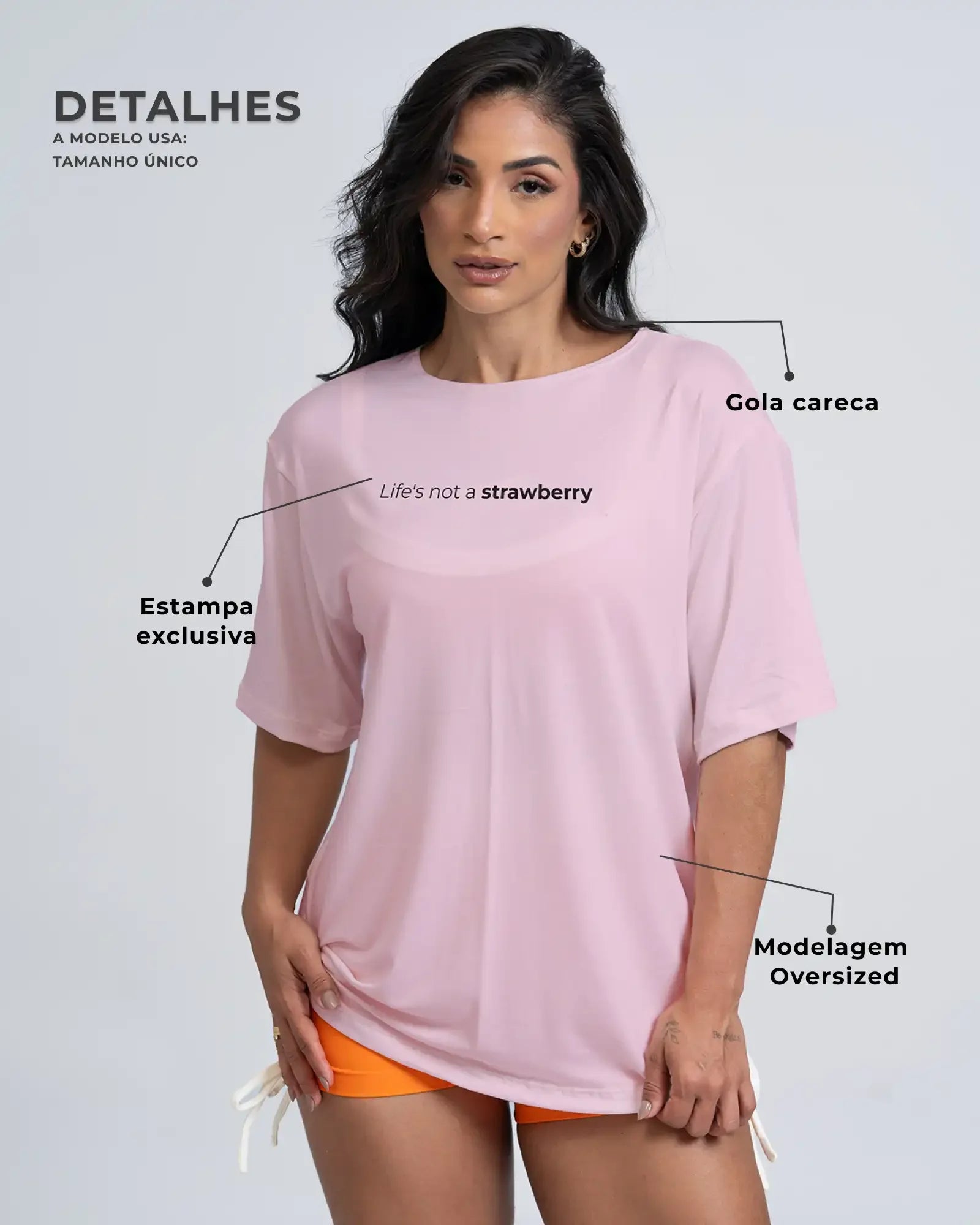 O Blusão Oversized Life's not a strawbarry é a peça perfeita para quem deseja unir conforto, autenticidade e personalidade em um só look. Com design moderno e modelagem ampla, ele oferece um visual despojado e leve, perfeito para o dia a dia, treinos leves ou momentos de relaxamento, sem abrir mão do estilo.