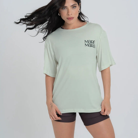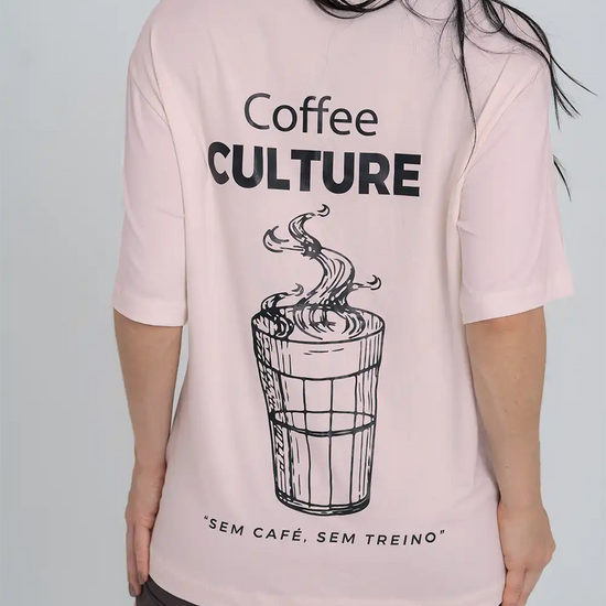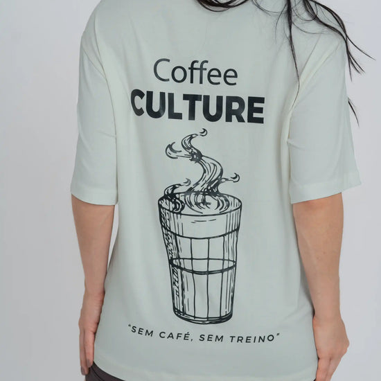 Estampa Exclusiva: Logo Maré Maria em destaque na parte frontal, acompanhada da estampa de um copo americano de café, referência aos metrôs de São Paulo, trazendo um toque urbano e acolhedor à peça.