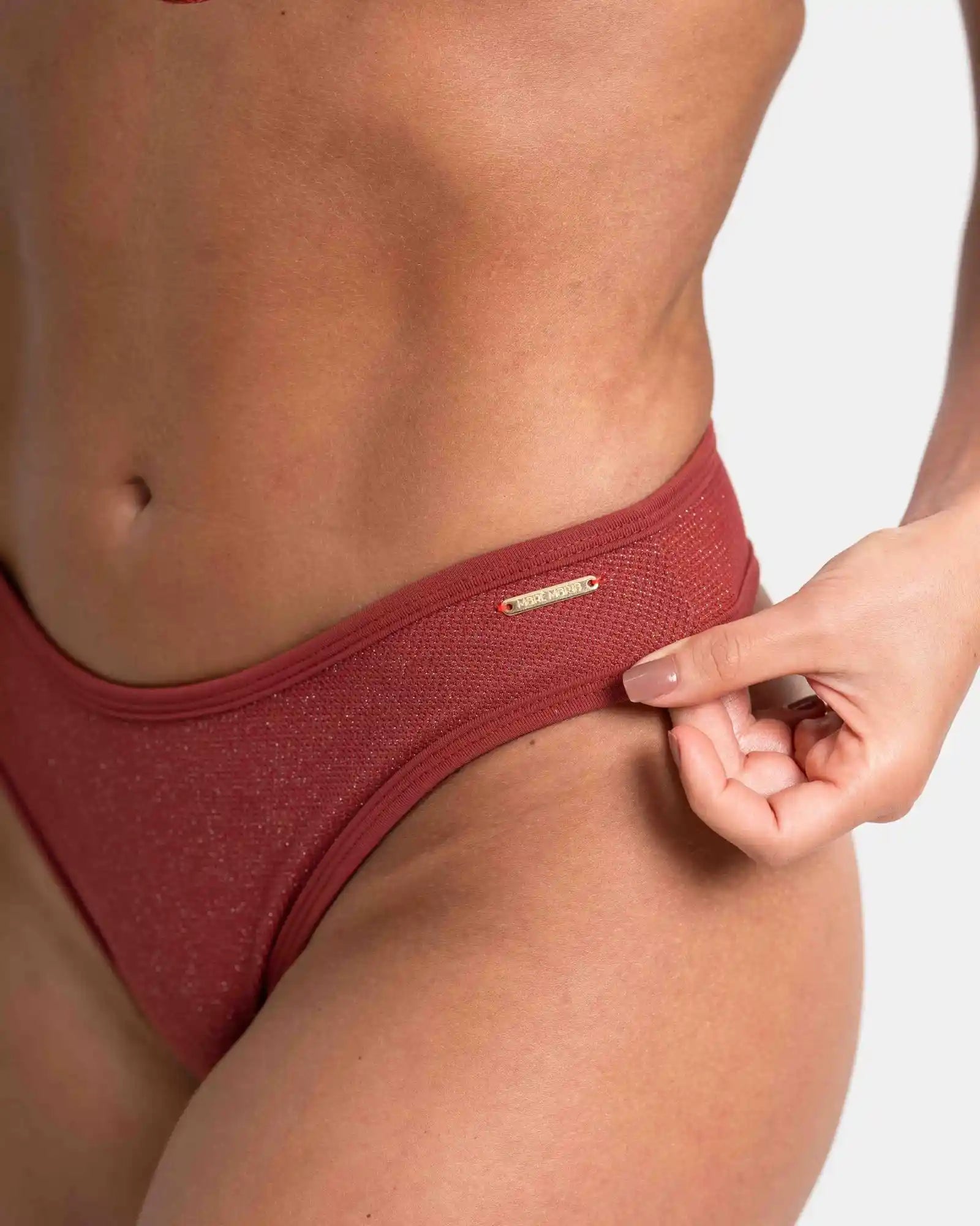 A calcinha Asa Delta foi pensada para valorizar a silhueta feminina com um toque retrô e ultra moderno. Sua modelagem cavada alonga as pernas, define a cintura e traz aquele visual poderoso que nunca sai de moda. Confeccionada no tecido Premium, ela possui brilho sutil e textura delicada que elevam a peça a outro nível de sofisticação.