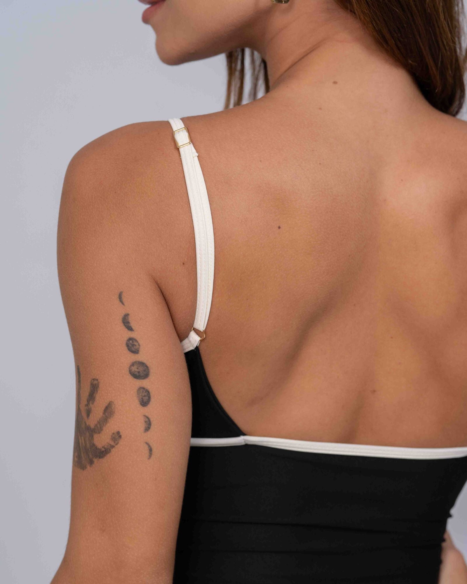Com alças finas ajustáveis e um recorte quadrado nas costas, esse modelo une praticidade e estilo com personalidade. A combinação do preto absoluto com detalhes Off White traz um contraste sofisticado e atemporal, perfeito para transitar entre o treino e o dia a dia.