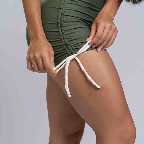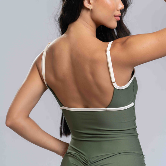 Macaquinho Fitness Pérola Verde Militar Com Viés Off White- Maré Maria