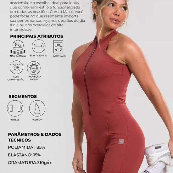 Perfeito para o treino e além: use com tênis para looks esportivos ou aposte em jaquetas oversized para um visual casual urbano.• Modelo: Macaquinho Zip Fuel