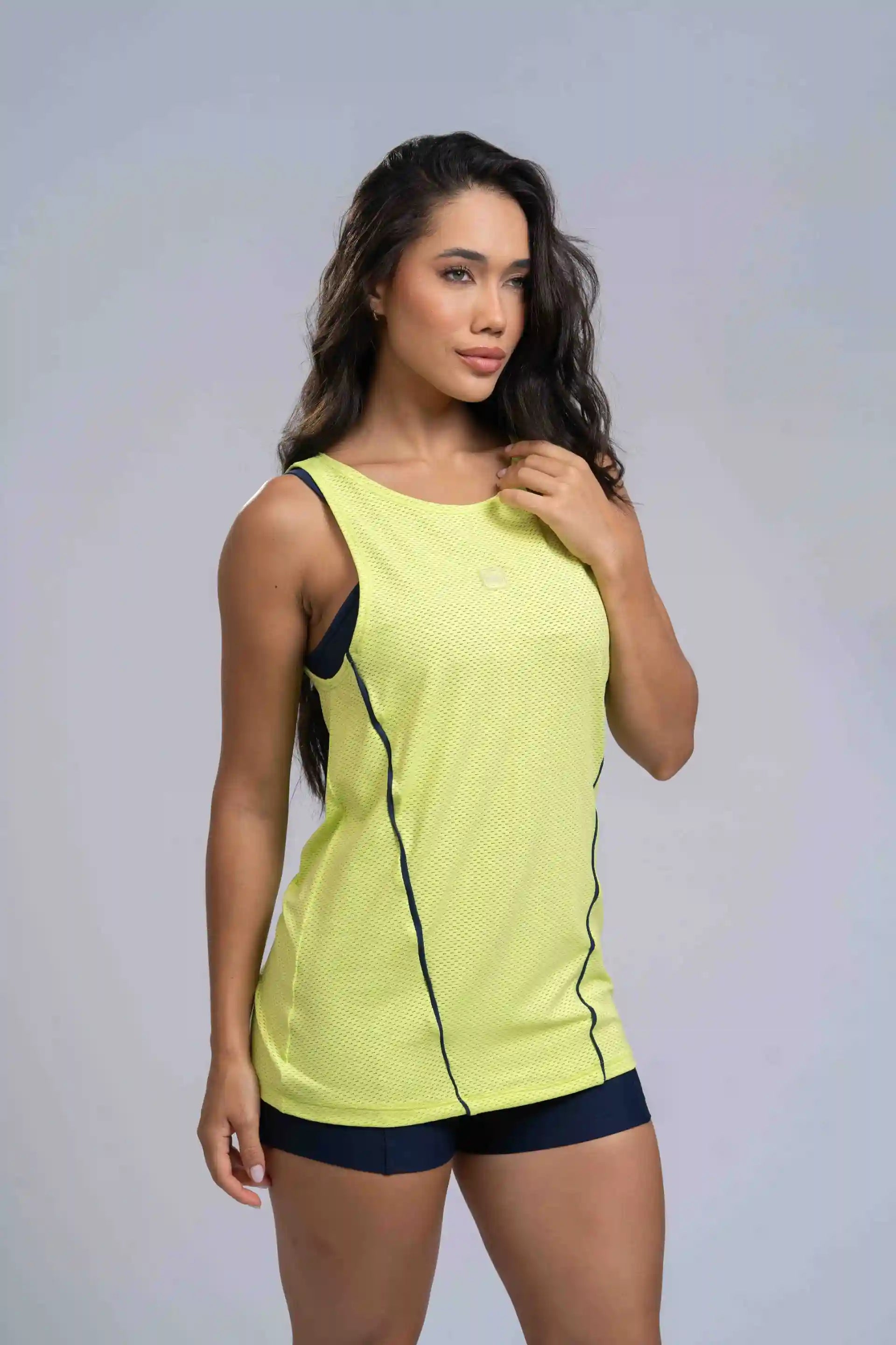 🔺 Aposte na Regata Fitness Ella Verde Maçã com Azul Marinho para treinar com conforto e estilo. Uma peça leve, funcional e com acabamento impecável — ideal para elevar sua rotina com atitude.