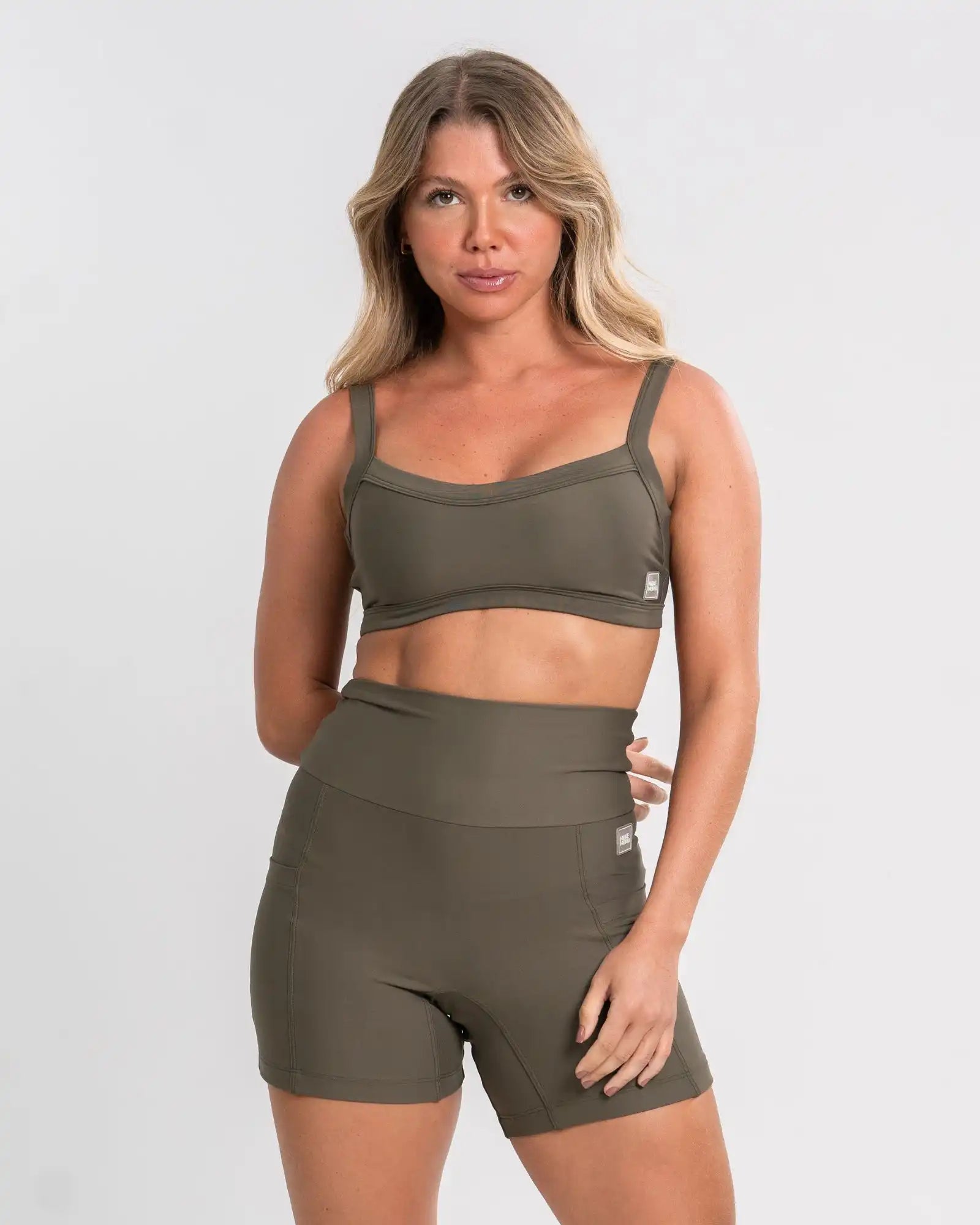 Short Fitness Bike Verde Musgo – Sem Costura Frontal