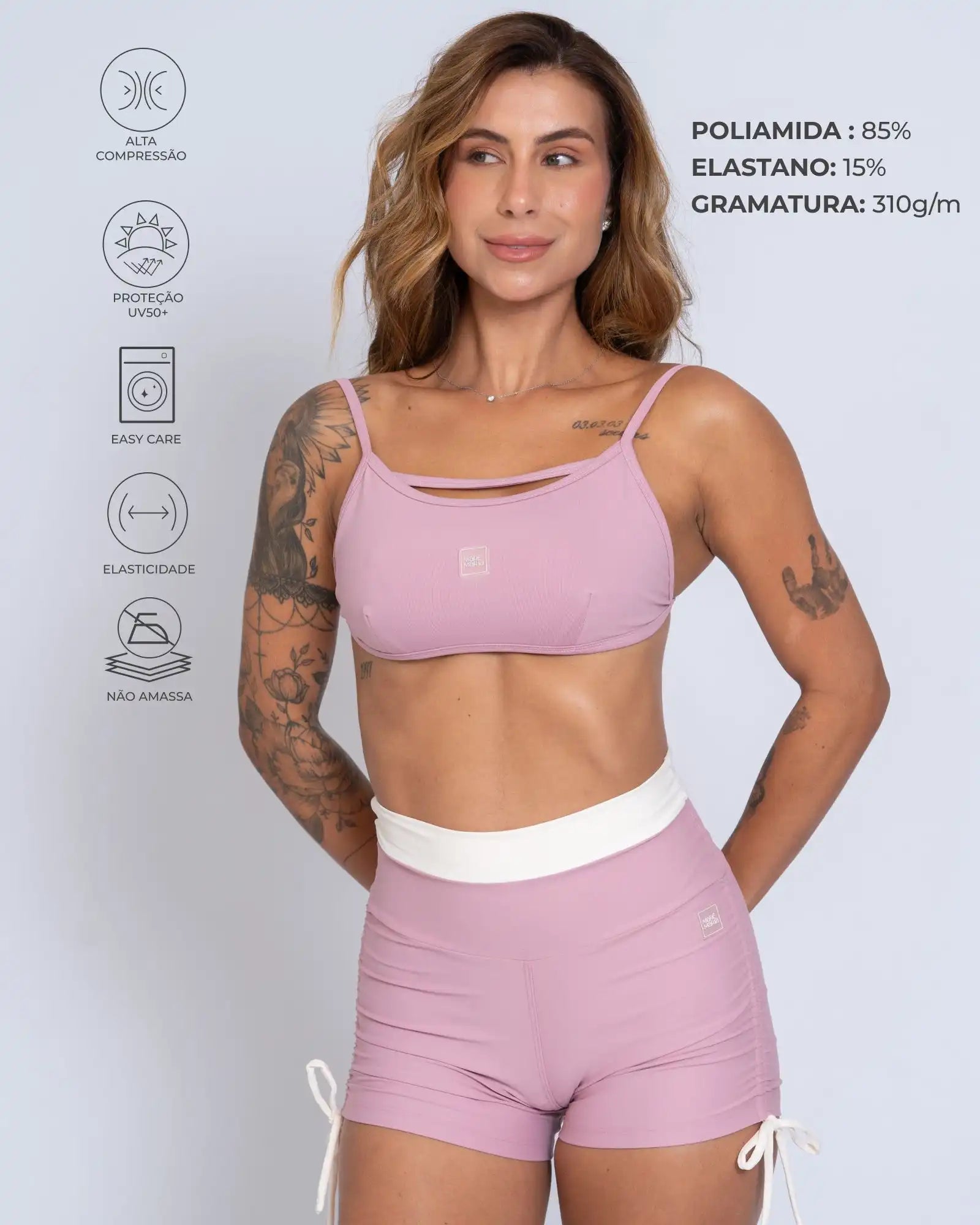 Short Fitness Smile Duo Rosa Glam com Off White: Charme, Conforto e Performance no Seu Dia a Dia