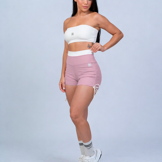 Short Fitness Smile Duo Rosa Glam com Off White: Charme, Conforto e Performance no Seu Dia a Dia