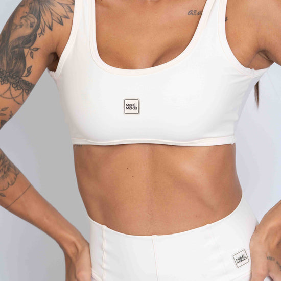 Escolha o Top Fitness Basic Off White e experimente a combinação perfeita de moda e desempenho em cada treino. Eleve sua confiança e potencialize seus resultados com esta peça única no mundo fitness!