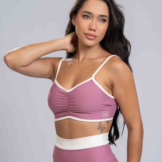 O Top Fitness Fresh Duo une design contemporâneo e funcionalidade em uma peça marcante e versátil. A combinação do Duo Rosa Chá com viés Off White cria um contraste elegante que valoriza o visual esportivo com um toque refinado. Seu recorte quadrado nas costas, a pala fina e as alças ajustáveis proporcionam suporte com caimento impecável, enquanto o franzido frontal acrescenta charme e feminilidade. O bojo removível opcional permite personalização conforme a sua preferência e necessidade.