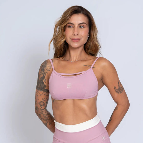 O decote valorizado pelo viés desenha suavemente o busto, enquanto as costas abertas garantem amplitude de movimentos e um visual sofisticado. As alças com regulagem oferecem um ajuste personalizado, promovendo conforto e segurança durante a prática de exercícios.